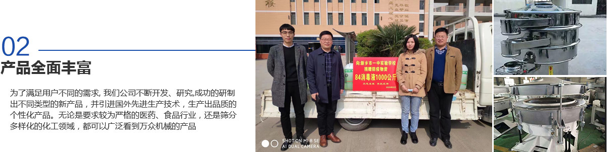 新鄉(xiāng)市萬眾機械設(shè)備有限公司是生產(chǎn)振動機械、篩分設(shè)備和過濾設(shè)備的專業(yè)廠家之一,擁有生產(chǎn)設(shè)備、雄厚的技術(shù)力量、完善的檢測手段、嚴(yán)格的管理體系。是河南省的商標(biāo)之一,被河南省科學(xué)技術(shù)廳頒定為高新技術(shù)企業(yè),為新鄉(xiāng)市“守合同重信用企業(yè)“。質(zhì)量信得過產(chǎn)品、質(zhì)量服務(wù)消費者滿意企業(yè)、合格產(chǎn)品等榮譽稱號。擁有自主進出口經(jīng)營權(quán),產(chǎn)品遍布各地,并遠(yuǎn)銷北美、西歐及東南亞等地區(qū)。